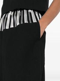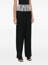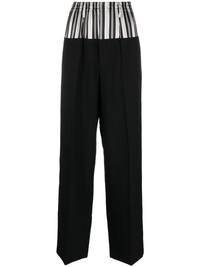 panelled striped trousers Part of a collection curated with designer Stefano Pilati, these trousers are characterized by the panelled wool-blend design. The top part boasts a striped black and white print with micro Fendi Roma lettering to add a branded touch. Highlights - Black - Wool blend - Vertical stripe pattern - Panelled design - Belt loops - Elasticated waistband - Pressed crease - Straight leg Made in Italy Composition Outer: Wool 89%, Polyamide 11% Lining: Silk 100% SIZE & FIT Model measurements Height 5 ft 11 in(1.8 m) Bust/Chest 30.7 in(78 cm) Hips 35.03 in(89 cm) Waist 24.4 in(62 cm) FittingInformation Designed with a wide-leg cut, these trousers allow for a close fit at the waist and offer a loose and roomy fit over the leg The elasticated waist allows for a comfortable fit Made from a midweight non-stretch fabric This piece fits true to size – take your usual size