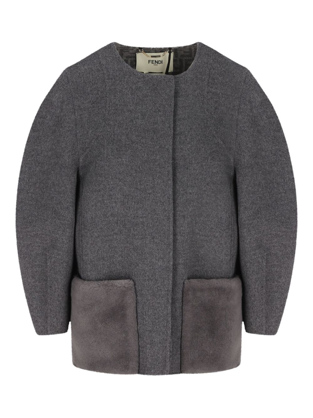 patch-pocket jacket Highlights - Grey - Fur trim - Round neck - Front concealed closure - Short sleeves - Front patch pockets Made in Italy Composition Outer: Wool 91%, Cotton 7%, Polyamide 2% Lining: Viscose 100% Washing instructions Read Manufacturer Guidelines