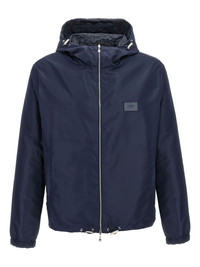 patterned hooded jacket Highlights - Navy blue - All-over geometric pattern - Drawstring hood - Zip fastening - Elasticated cuffs Made in Italy Composition Polyester 100% Washing instructions Read Manufacturer Guidelines