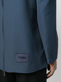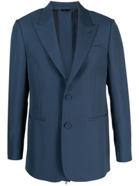 peak-lapels single-breasted blazer Highlights - Indigo blue - Virgin wool blend - Peak lapels - Front button fastening - Two front jetted pockets - Chest welt pocket - Long sleeves - Buttoned cuffs - Logo patch to the rear - Rear zip fastening - Straight hem Made in Italy Composition Outer: Virgin Wool 82%, Polyester 18% Lining: Cupro 100% SIZE & FIT Model measurements Height 6 ft 1 in(1.85 m) Bust/Chest 38.58 in(98 cm) Hips 37 in(94 cm) Waist 30.31 in(77 cm) FittingInformation Designed for a slim fit, offering a comfortable fit that sits just away from the body Made from a midweight non-stretch fabric This piece fits true to size – take your usual size