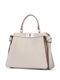Peekaboo ISeeU medium tote bag Fendi's iconic Peekaboo ISeeU tote bag is presented in a muted colourway and features the signature twist-lock fastening. Meanwhile, knotted side laces accent this versatile accessory that can either be held by the single top handle or worn over the shoulder thanks to the detachable shoulder strap. Highlights - Cream white - Calf leather - Knot detailing - Embossed logo to the front - Twist-lock fastening - Single top handle - Detachable shoulder strap - Partitioned compartment Made in Italy Composition Outer: Calf Leather 100% SIZE & FIT Measurement DEPTH 5.11 in(13 cm) HANDLE 4.33 in(11 cm) HEIGHT 9.44 in(24 cm) STRAP 21.65 in(55 cm) WIDTH 12.99 in(33 cm)