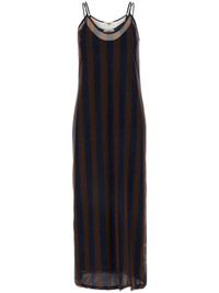 Pequin dress Highlights - Coffee brown/navy blue - Tulle overlay - Vertical stripe print - Adjustable spaghetti straps - Scoop neck - Straight hem - Ankle-length Made in Italy Composition Viscose 100%