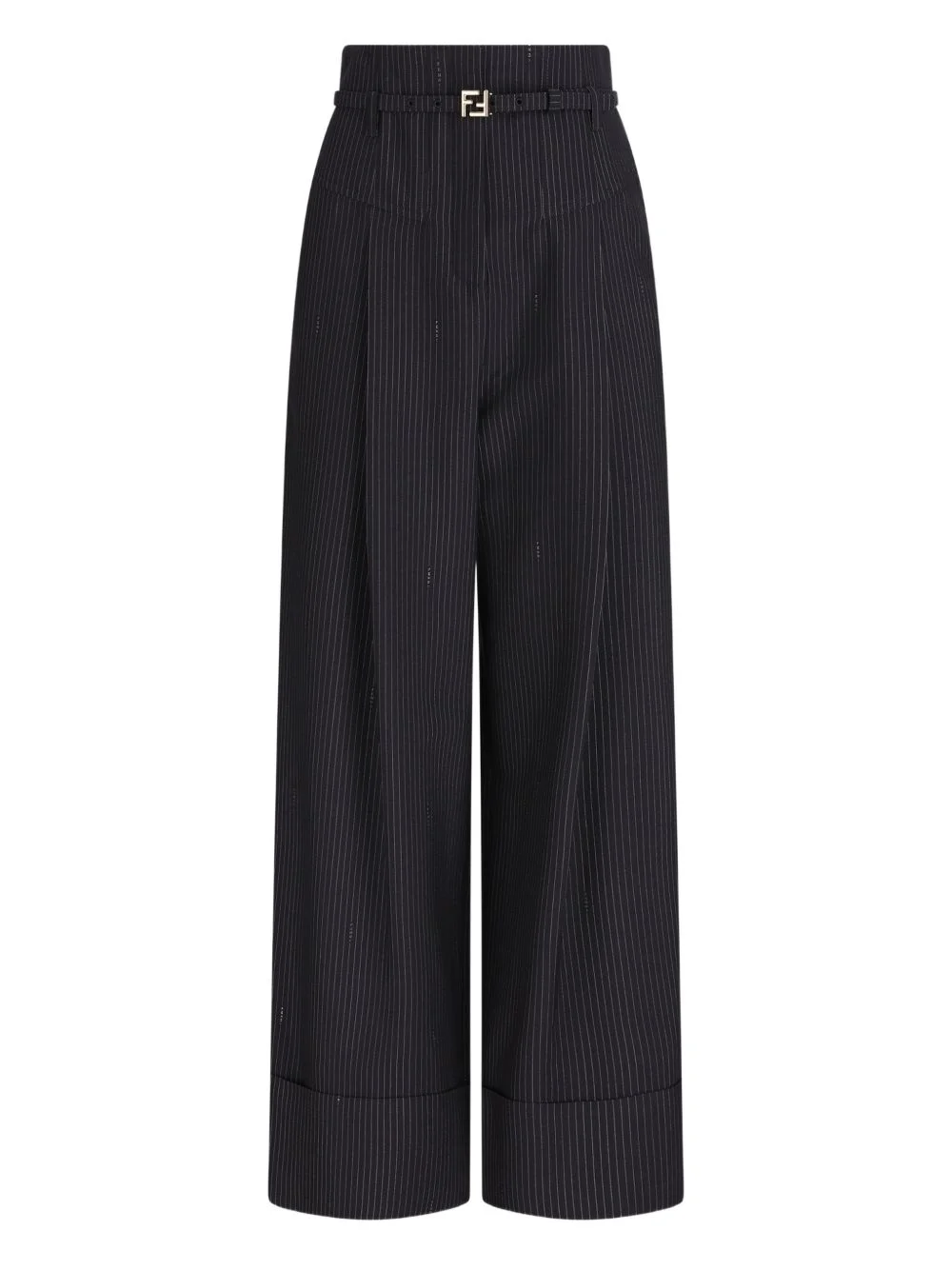 pinstripe belted trousers Highlights - Blue - Pinstripe pattern - Belt loops - Belt - Metal buckle - Side pockets Made in Italy Composition Wool 80%, Viscose 20% Washing instructions Read Manufacturer Guidelines