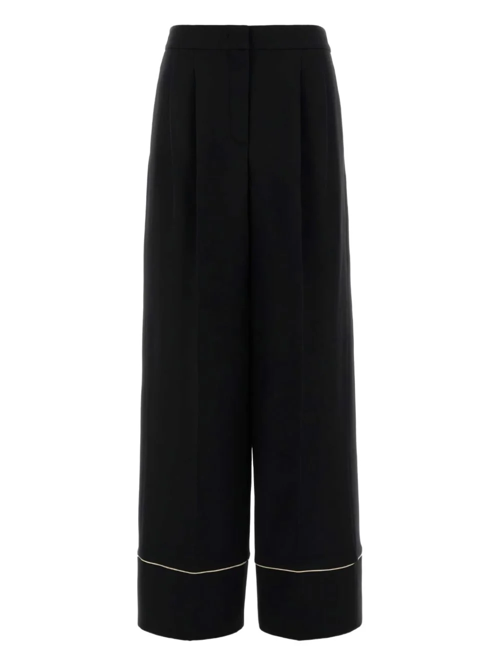 pleated-front side-pocket straight trousers Highlights - Black - White trim - Wide leg - Concealed fastening Made in Italy Composition Wool 77%, Silk 23% Washing instructions Read Manufacturer Guidelines