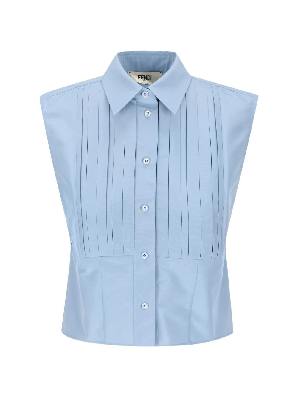 pleated shirt Highlights - Blue - Pleated detail - Button fastening - Shirt collar - Sleeveless - Drawstring detail Made in Italy Composition Polyester 54%, Cotton 46% Washing instructions Read Manufacturer Guidelines
