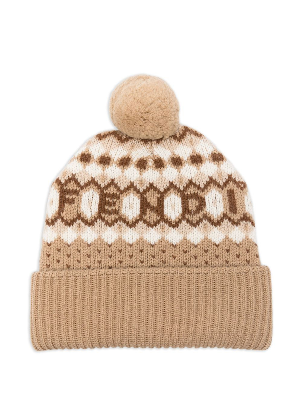 pompom nordic beanie Highlights - Camel - Geometric pattern - Ribbed brim - Pompom detail Made in Italy Composition Wool 100% Washing instructions Read Manufacturer Guidelines