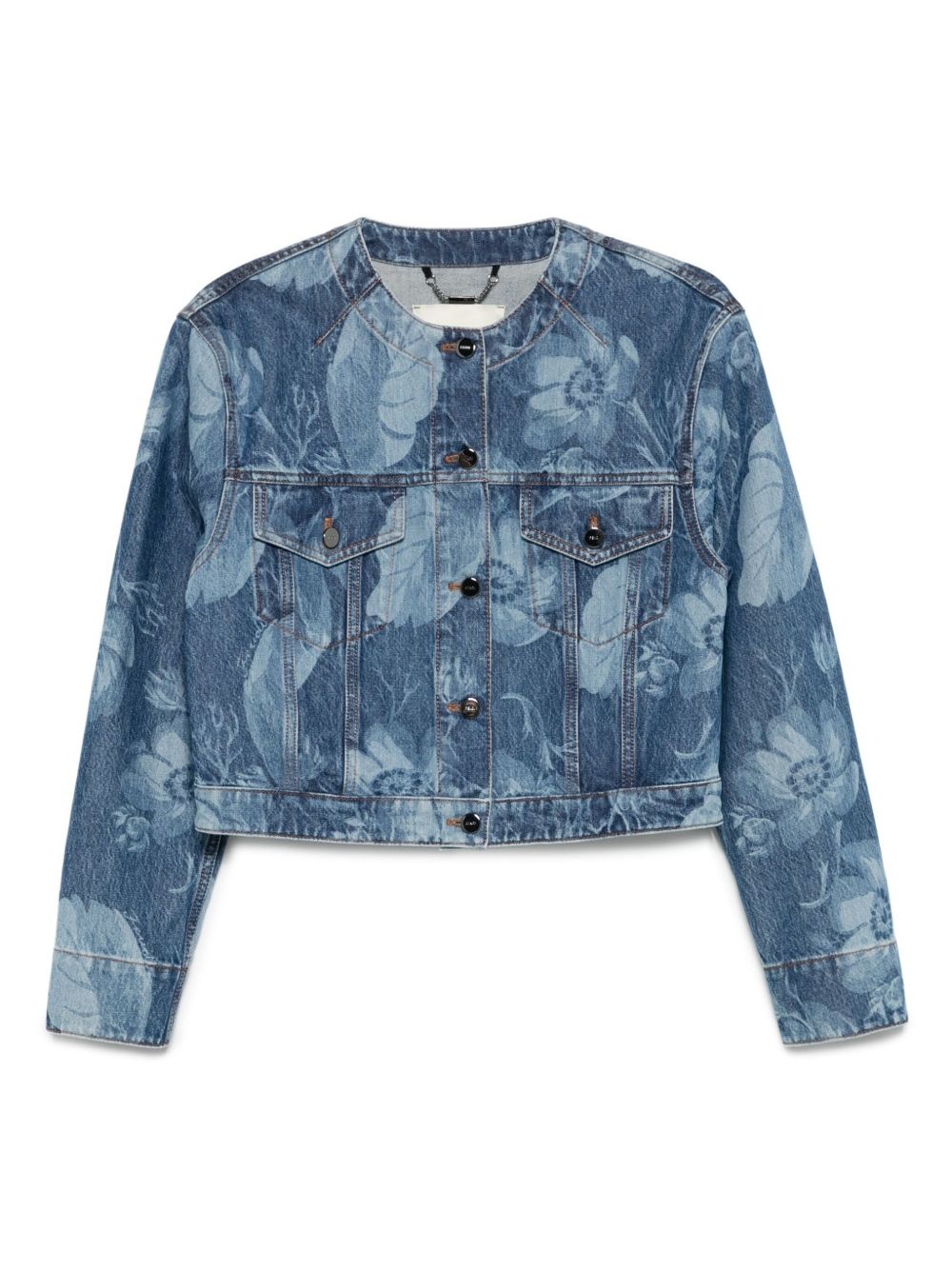 printed denim jacket Highlights - Indigo blue - Front button fastening - Two button-fastening chest pockets - Seam detailing - Cropped Made in Italy Composition Cotton 100% Washing instructions Machine Wash