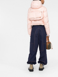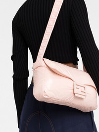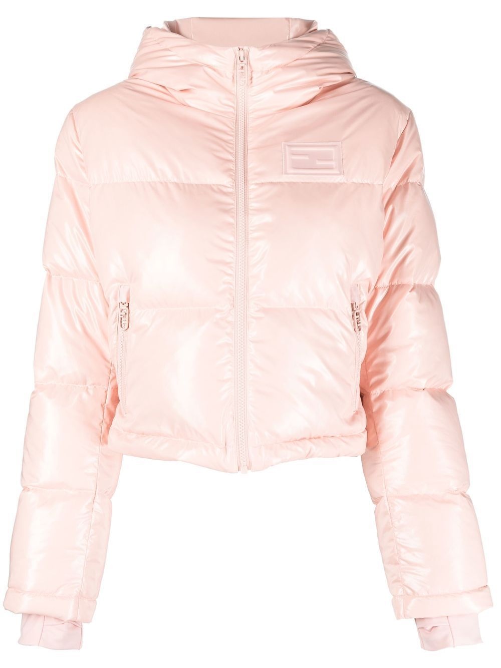 puffer down jacket Fendi's puffer jacket can be neatly folded into the rear pouch that resembles the brand's iconic Baguette bag. This quilted hooded style is filled with insulating down feathers for added warmth. Highlights - Light pink - Quilted - Logo patch to the front - Padded design - Classic hood - High neck - Down-feather filling - Two side zip-fastening pockets - Rear pouch pocket Made in Italy Composition Other fibres 100% SIZE & FIT Model measurements Height 5 ft 10 in(1.77 m) Bust/Chest 31.49 in(80 cm) Hips 33.85 in(86 cm) Waist 22.44 in(57 cm)