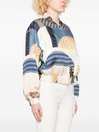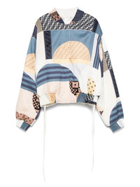 reversible cropped bomber jacket Highlights - Cerulean blue - Concealed front fastening - Two side slit pockets - Ribbed cuffs and hem - Patchwork pattern print Made in Italy Composition Outer: Silk 100%, Viscose 100% Lining: Polyamide 100% SIZE & FIT Model measurements Height 5 ft 9 in(1.75 m) Bust/Chest 34.64 in(88 cm) Hips 36.61 in(93 cm) Waist 26.37 in(67 cm) FittingInformation Designed to be unstructured, offering a loose fit throughout The adjustable drawstring means that you can adjust this piece’s fit to suit your comfort and preference Made from a padded non-stretch fabric, giving it no natural elasticity Washing instructions Dry Clean Only