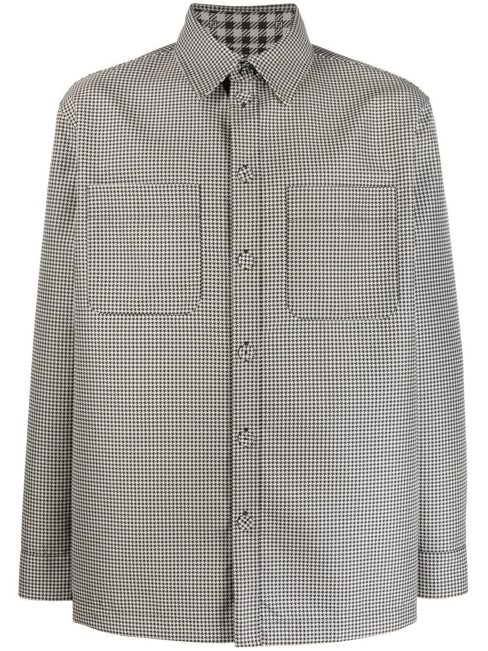 reversible houndstooth-check jacket black/white houndstooth pattern classic collar front button fastening long sleeves straight hem two chest flap pockets reversible Made in Italy Composition Polyester 100% SIZE & FIT Model measurements Height 6 ft 2 in(1.88 m) Bust/Chest 35.43 in(90 cm) Hips 36.61 in(93 cm) Waist 27.95 in(71 cm) FittingInformation This piece fits true to size. We recommend you get your regular size Cut for a loose fit Made with a mid-weight non-stretch fabric