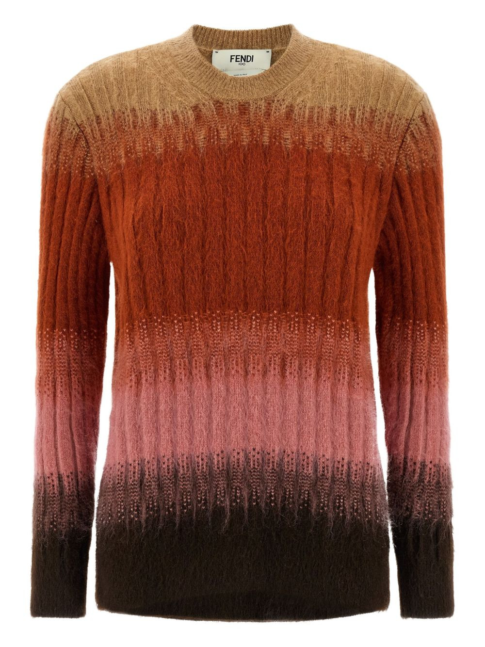 ribbed logo-embroidered knit sweater Highlights - Brown - Ribbed knit - Degrade pattern - Crew neck - Long sleeves - Logo embroidery Made in Italy Composition Mohair 67%, Polyamide 30%, Wool 3% Washing instructions Read Manufacturer Guidelines