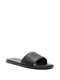 Roma embossed-logo leather sandals Highlights - Black - Leather - Embossed logo - Open toe - Flat sole - Slip-on style Made in Italy Composition Lining: Calf Leather 100% Outer: Calf Leather 100% Sole: Rubber 100%, Calf Leather 100%