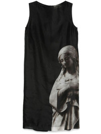 Roman statue-print midi dress Highlights - Black - Silk - Organza - Roman statue-print to the side - Boat neck - Sleeveless - Slight flare - Rear slit - Internal slip dress - Straight hem - Mid-length Made in Italy Composition Silk 100% SIZE & FIT Model measurements Height 5 ft 10 in(1.77 m) Bust/Chest 32.28 in(82 cm) Hips 35.03 in(89 cm) Waist 25.19 in(64 cm) FittingInformation Designed to be unstructured, offering a loose fit throughout The detachable slip sits just away from the body, offering a close yet comfortable fit Made from a lightweight non-stretch fabric