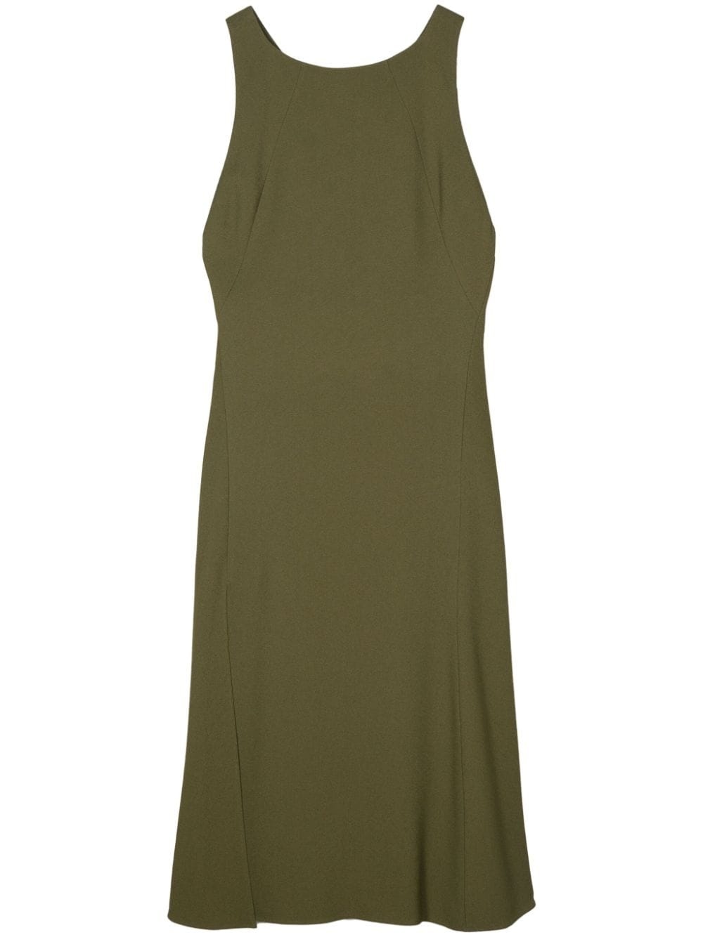 sable maxi dress Highlights - Olive green - Silk - Sable fabric - Concealed rear zip fastening - Boat neck - V-back - Sleeveless - Drop armholes - Fitted waistline - Flared skirt - Full-length - Partial lining Made in Italy Composition Outer: Viscose 100% Lining: Silk 100%