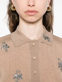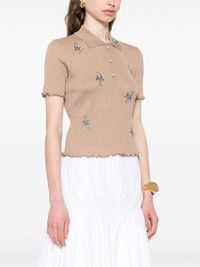 short-sleeve cropped polo top Highlights - Tobacco brown - Short front button fastening - Bead detailing - Sequin detailing - Lettuce hem Made in Italy Composition Cotton 100% SIZE & FIT Model measurements Height 5 ft 10 in(1.79 m) Bust/Chest 35.43 in(90 cm) Hips 35.03 in(89 cm) Waist 25.19 in(64 cm) FittingInformation Designed for a slim fit that sits just away from the body offering a close yet comfortable fit Made with a lightweight knit, this piece offers some stretch