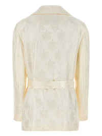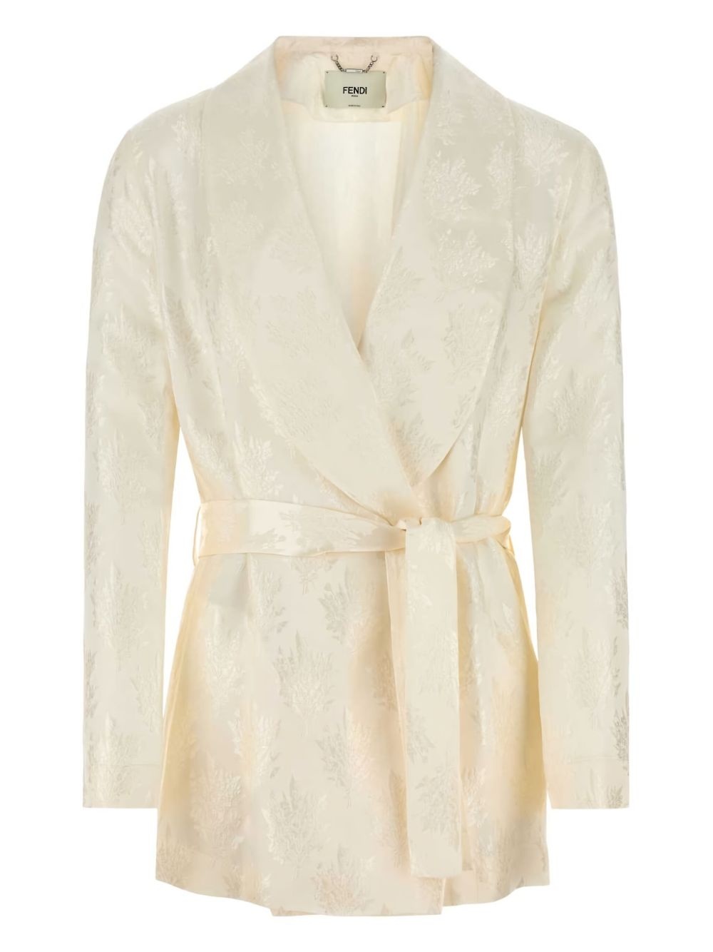silk wrap jacket Highlights - White - Front tie fastening - Drop shoulder - Long sleeves - Shawl lapels Made in Italy Composition Lining: Silk 51%, Viscose 49% Outer: Silk 51%, Viscose 49%