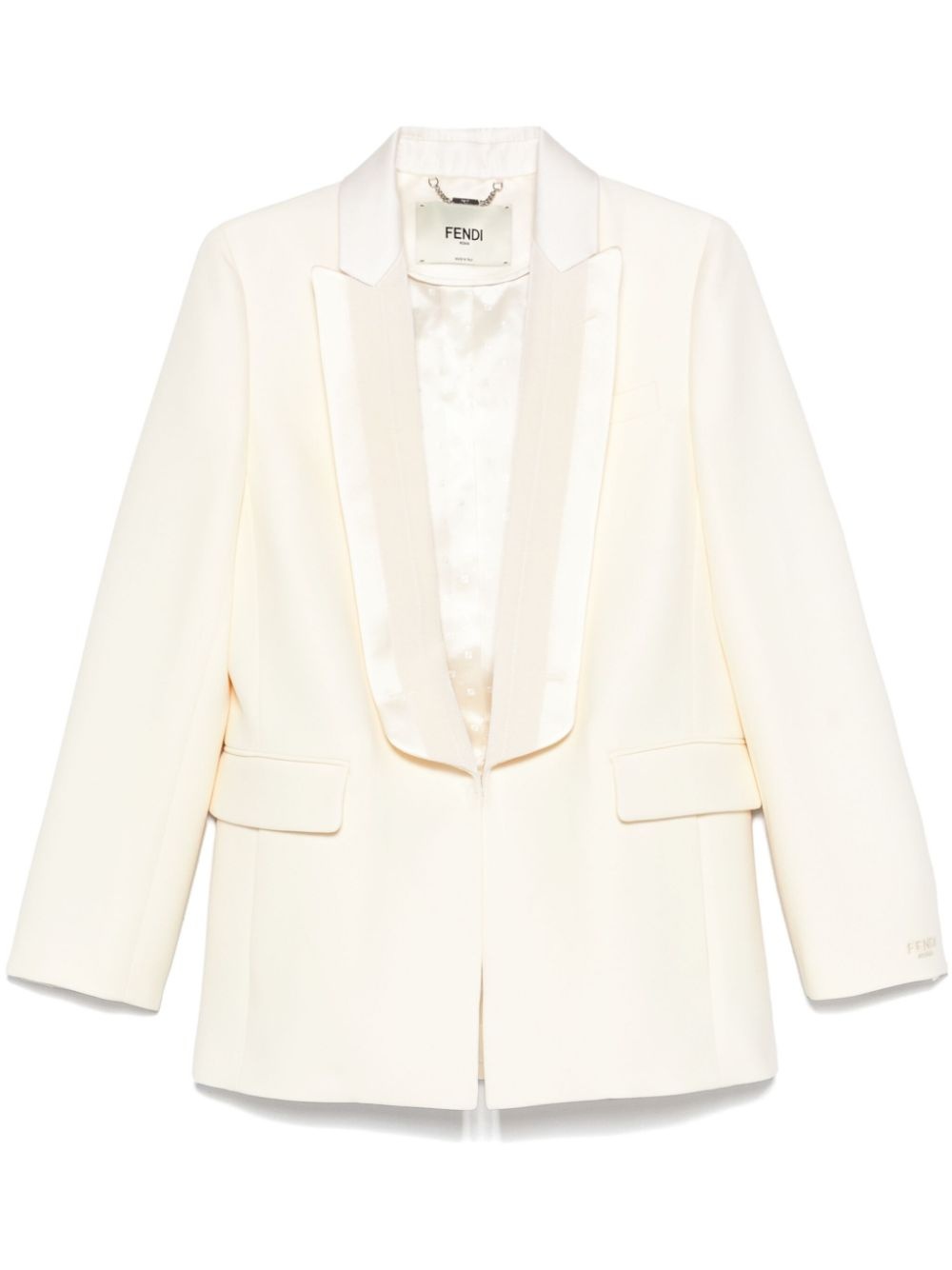 single-breasted blazer Highlights - Almond beige - Hook and eye fastening - American rear vent - Jetted chest pocket - Two front flap pockets Made in Italy Composition Lining: Viscose 100% Outer: Wool 77%, Silk 23% SIZE & FIT Model measurements Height 5 ft 11 in(1.8 m) Bust/Chest 31.49 in(80 cm) Hips 35.82 in(91 cm) Waist 24.8 in(63 cm) FittingInformation Designed to be unstructured, offering a loose fit throughout The internal shoulder pads offer a structured shape Made from a midweight non-stretch fabric