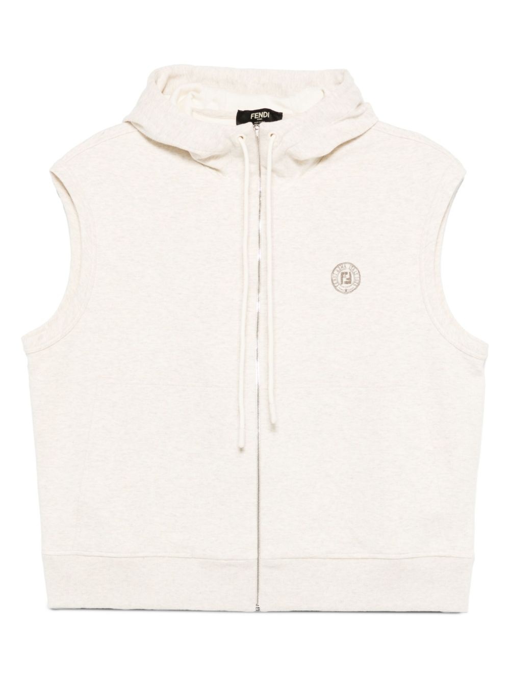 sleeveless zip-up hoodie Highlights - Light beige - Melange - Sleeveless design - Hooded - Zip fastening - Embroidered logo Made in Italy Composition Outer: Polyester 100%, Cotton 85%, Polyamide 9%, Elastane 6% Lining: Cotton 100% SIZE & FIT Model measurements Height 6 ft 2 in(1.87 m) Bust/Chest 37.79 in(96 cm) Hips 37.79 in(96 cm) Waist 30.31 in(77 cm) Washing instructions Machine Wash