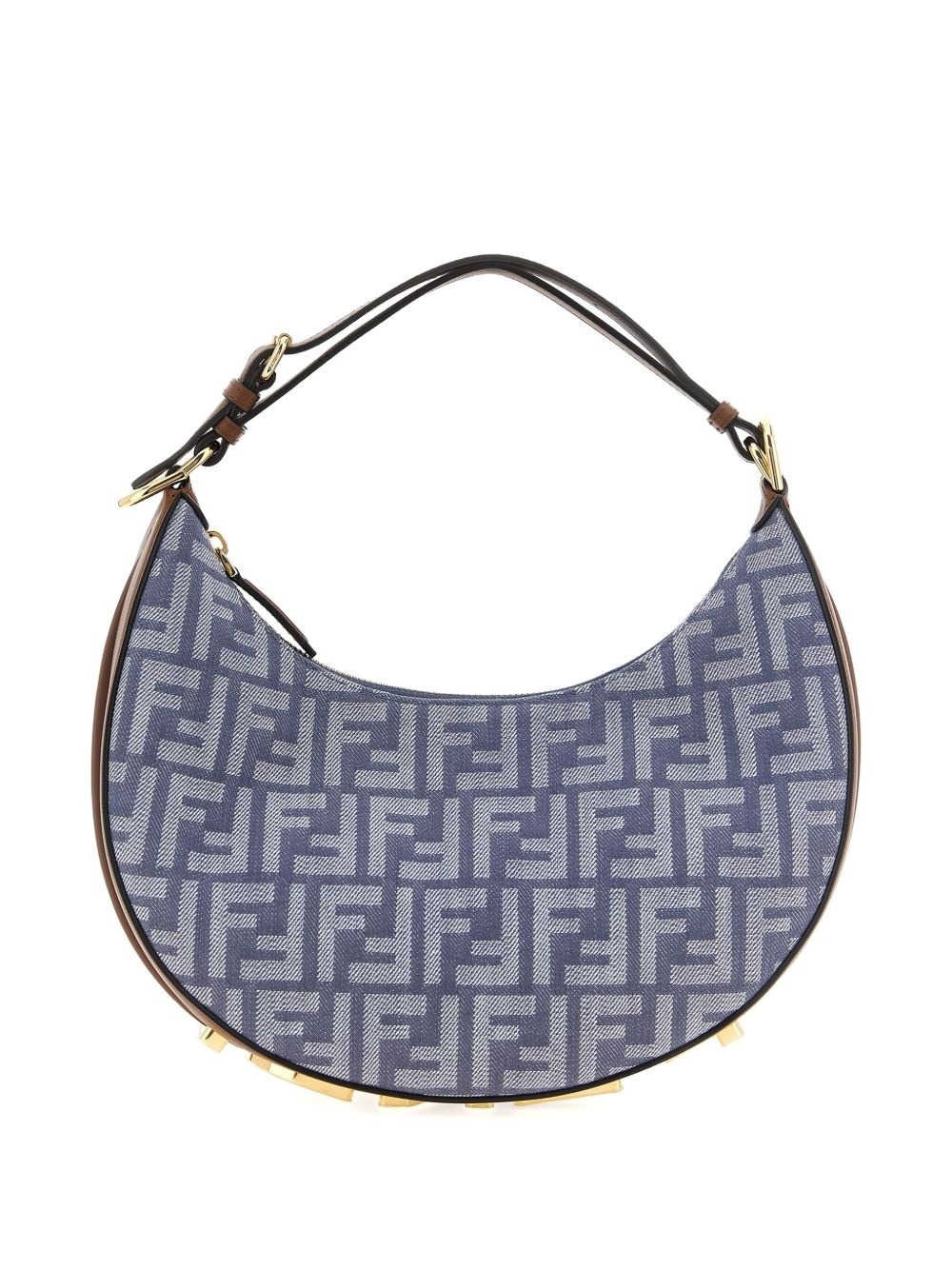 small Fendigraphy shoulder bag Highlights - Blue - Denim fabric - Leather adjustable-strap - Ff jacquard-pattern - Gold-tone logo lettering - Zip top-closure Made in Italy Composition Outer: Calf Leather 100%, Cotton 34%, Polyamide 27%, Polyurethane 21%, Polyester 18% SIZE & FIT Measurement DEPTH 3.93 in(10 cm) HEIGHT 9.64 in(24.5 cm) WIDTH 11.41 in(29 cm)