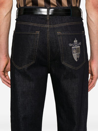 straight-leg jeans Highlights - Midnight blue - Front button and zip fastening - Classic five pockets - Logo patch to the rear Made in Italy Composition Cotton 100% SIZE & FIT Model measurements Height 6 ft 2 in(1.87 m) Bust/Chest 37.79 in(96 cm) Hips 37.79 in(96 cm) Waist 30.31 in(77 cm) FittingInformation Designed with a straight leg, these jeans allow for an unrestricted and comfortable fit over the leg Sturdy and hard-wearing, this denim piece offers no stretch Washing instructions Hand Wash