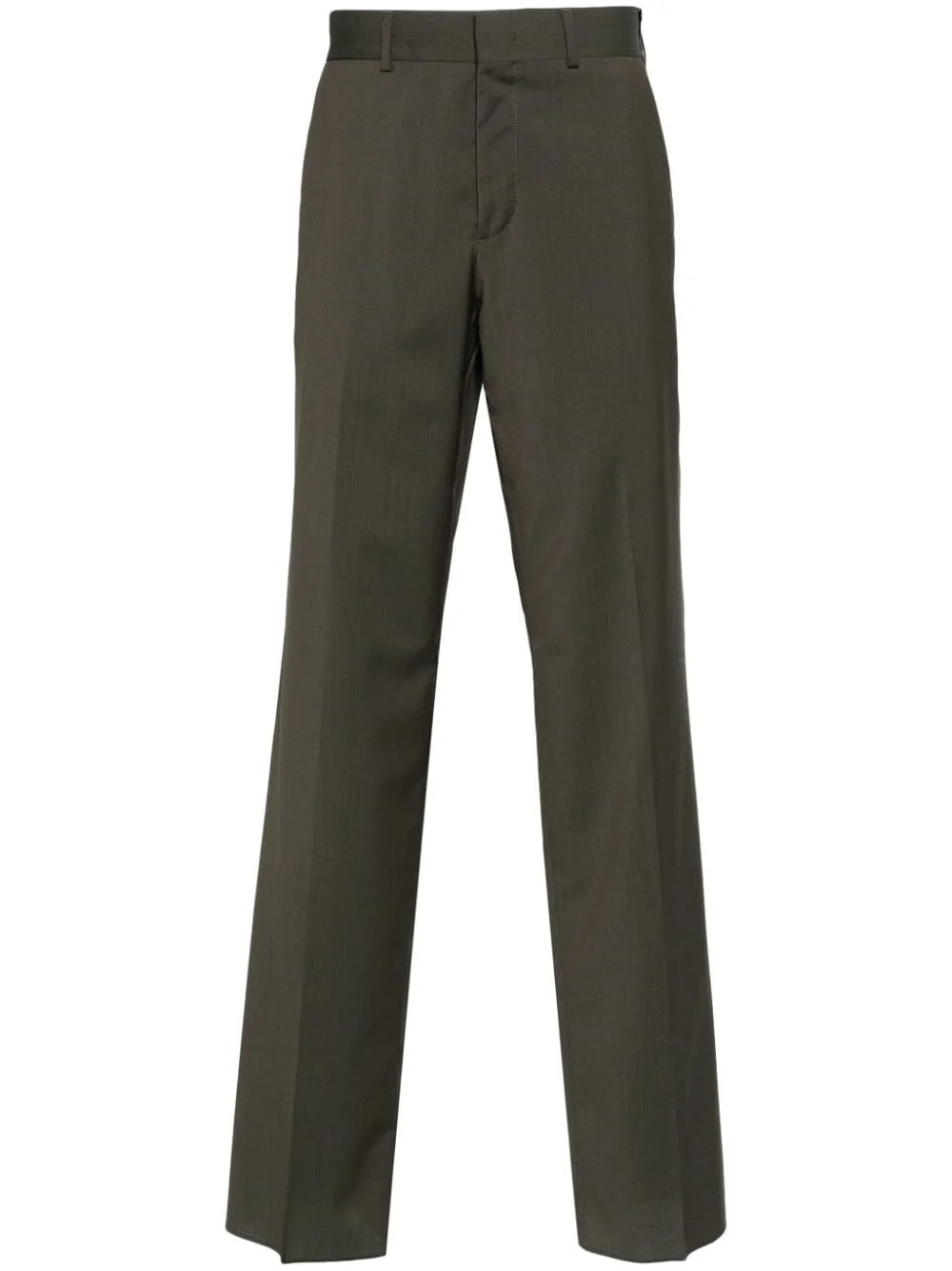 straight-leg trousers Highlights - Olive green - Virgin wool - Concealed front button, hook and zip fastening - Belt loops - Two diagonal pockets to the sides - Pressed crease - Two rear jetted pockets - Straight leg Made in Italy Composition Lining: Viscose 100% Outer: Virgin Wool 100% SIZE & FIT Model measurements Height 6 ft 2 in(1.87 m) Bust/Chest 38.18 in(97 cm) Hips 36.61 in(93 cm) Waist 29.13 in(74 cm) FittingInformation Designed for a straight-leg, allowing for an unrestricted and comfortable fit over the leg The unfinished hems allow for the length to be altered Made from a midweight non-stretch fabric This piece fits true to size – take your usual size