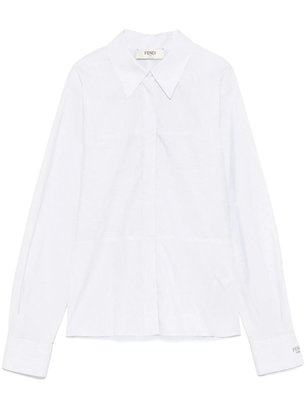 striped shirt Highlights - White - Cotton - Poplin texture - Panelled design - Concealed front button fastening - Multi-way stripe pattern - Pointed flat collar - Long sleeves - Embroidered logo at the sleeve - Buttoned cuffs - Straight hem Made in Italy Composition Cotton 100% Washing instructions Machine Wash