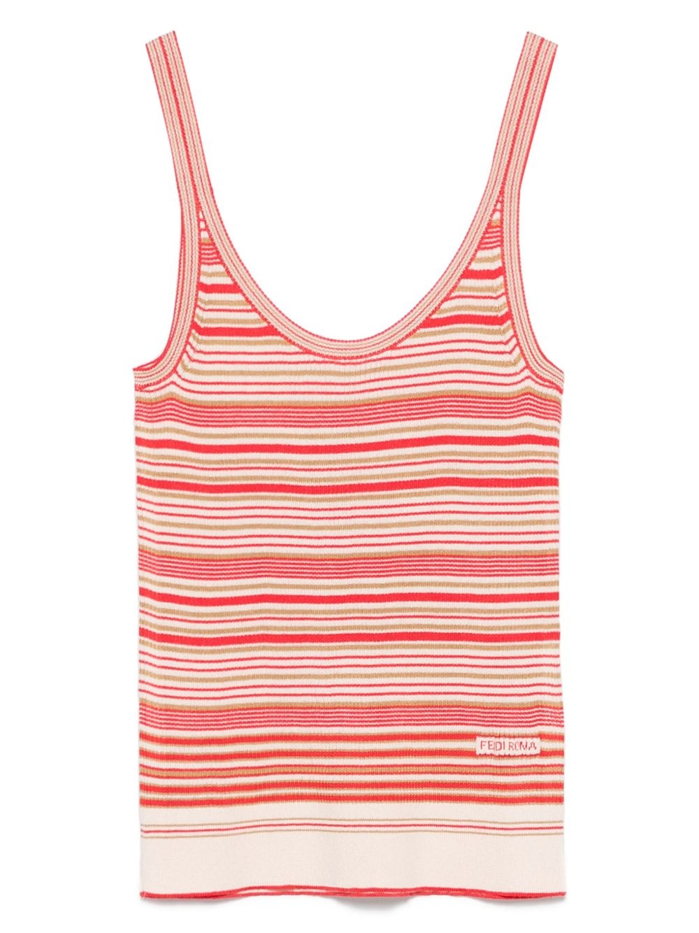 striped tank top Highlights - Bright red - Stripe trim - Scoop neck - Wide shoulder straps Made in Italy Composition Silk 72%, Cotton 18%, Polyamide 10% SIZE & FIT Model measurements Height 5 ft 9 in(1.75 m) Bust/Chest 34.64 in(88 cm) Hips 36.61 in(93 cm) Waist 26.37 in(67 cm) FittingInformation Designed for a close fit throughout Made with a midweight knit, this piece offers some stretch