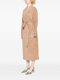 suede coat Highlights - Light brown - Two side inset pockets - Detachable belt - Shawl lapels - Long sleeves Made in Italy Composition Calf Suede 100% SIZE & FIT Model measurements Height 5 ft 9 in(1.75 m) Bust/Chest 34.64 in(88 cm) Hips 36.61 in(93 cm) Waist 26.37 in(67 cm) FittingInformation Designed to be unstructured, offering a loose fit throughout The tie fastening gives an adaptable and personalised fit Suede leather has a soft and treated construction offering some flexibility