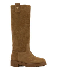 suede knee-high boots Highlights - Bronze brown - Suede - Rubber sole - Slip-on style - Round toe Made in Italy Composition Lining: Calf Leather 100% Outer: Suede 100% Sole: Rubber 100% SIZE & FIT Measurement HEEL 1.37 in(3.5 cm)