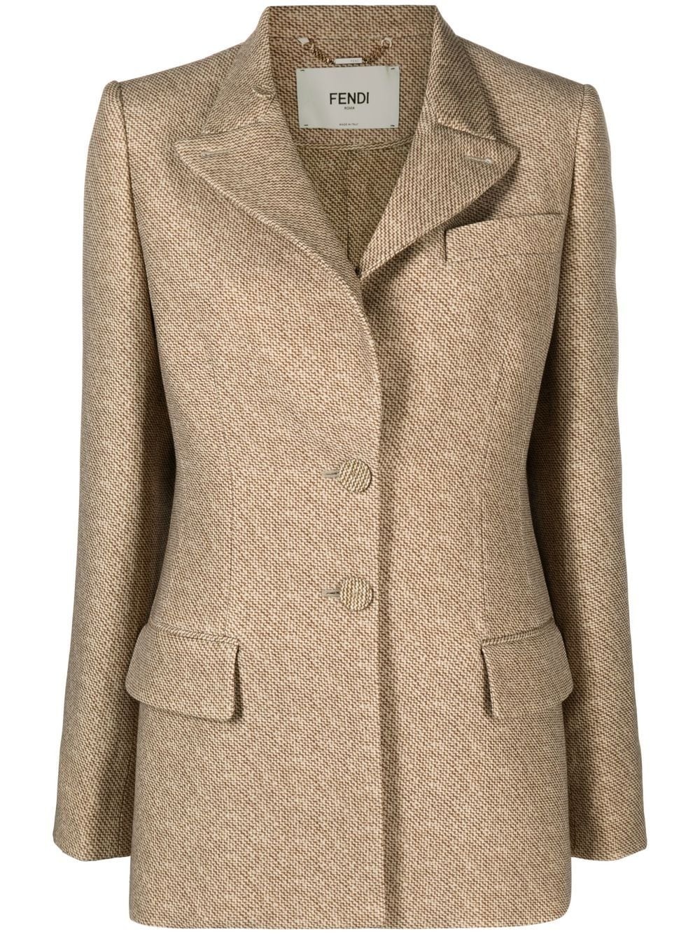 tailored button-fastening jacket Fendi takes a refined approach to design with this button-fastening jacket. Featuring a classic tailored construction and neutral palette, the garment has a sophisticated and timeless feel. Made in Italy Composition Outer: Wool 82%, Silk 16%, Polyester 2% Lining: Silk 100% SIZE & FIT Model measurements Height 5 ft 10 in(1.78 m) Bust/Chest 31.49 in(80 cm) Hips 35.03 in(89 cm) Waist 23.62 in(60 cm) FittingInformation This piece fits true to size. We recommend you get your regular size Cut for a slim fit Made with a mid-weight non-stretch fabric