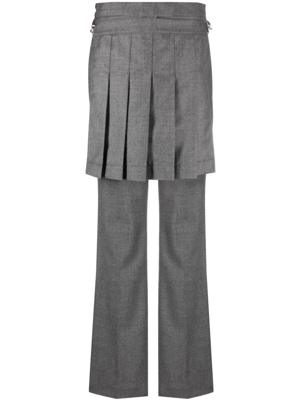 tailored skirt trousers Fendi’s AW23 collection sees tailoring reimagined with an avant-garde spin. From the lineup, these straight-leg trousers are tailored from wool and overlaid with a detachable pleated skirt. Highlights - Grey - Wool - High waist - Concealed front fastening - Detachable pleated skirt - Side pouch pockets - Straight leg Made in Italy Composition Wool 100% SIZE & FIT Model measurements Height 5 ft 10 in(1.78 m) Bust/Chest 33.07 in(84 cm) Hips 36.61 in(93 cm) Waist 24.8 in(63 cm) FittingInformation Designed for a slim fit, these trousers offer a close fit at the waist, allowing a comfortable close fit and some movement over the leg Made from a midweight non-stretch fabric This piece fits true to size – take your usual size