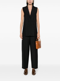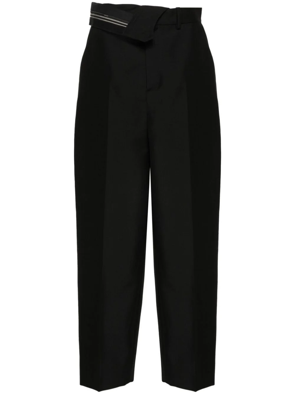 pressed-crease tapered trousers Highlights - Black - Mohair-wool blend - Asymmetric waist - Overlapping panel to the waist - Belt loops - Two side slash pockets - Pressed crease - Ankle-length - Tapered leg - Concealed front button, hook and zip fastening Made in Italy Composition Mohair 60%, Wool 40% SIZE & FIT Model measurements Height 5 ft 10 in(1.78 m) Bust/Chest 33.46 in(85 cm) Hips 36.22 in(92 cm) Waist 23.22 in(59 cm) FittingInformation Designed for a tapered fit, these trousers allow for a close fit at the waist and a loose unrestricted fit over the leg with a closer fit towards the ankle Made from a midweight non-stretch fabric This piece fits true to size – take your usual size