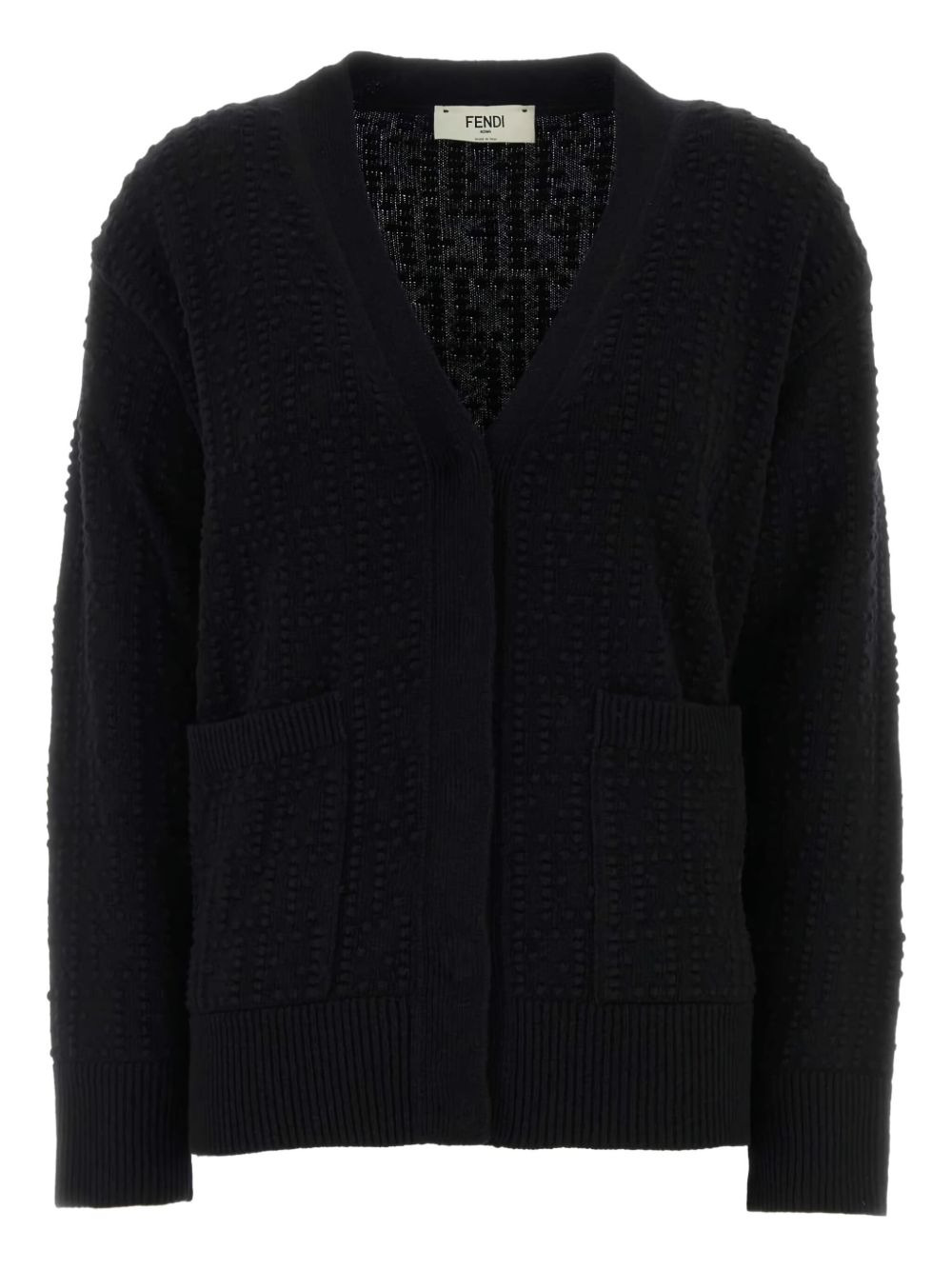 textured cardigan Highlights - Black - Wool - Textured knit - V-neck - Front pockets - Ribbed hem - Ribbed cuffs Made in Italy Composition Wool 70%, Cashmere 30% Washing instructions Read Manufacturer Guidelines