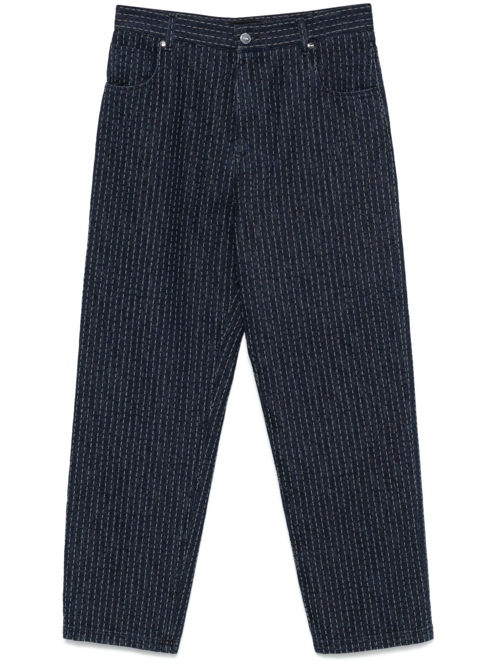 topstitching jeans Highlights - Indigo blue - Concealed fly and button fastening - Belt loops - Classic five pockets Made in Italy Composition Cotton 93%, Polyamide 6%, Elastane 1% SIZE & FIT Model measurements Height 6 ft 0 in(1.84 m) Bust/Chest 35.82 in(91 cm) Hips 37 in(94 cm) Waist 28.34 in(72 cm) FittingInformation Designed with a straight leg, these jeans allow for an unrestricted and comfortable fit over the leg Constructed from stretch denim, this piece offers a stretch fit with durability