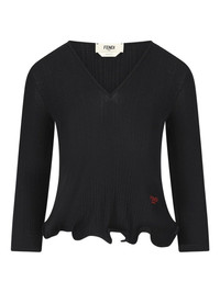 V-neck ruffled top Highlights - Black - Ribbed knit - V-neck - Long sleeves - Ruffled hem Made in Italy Composition Wool 100% Washing instructions Read Manufacturer Guidelines