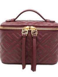Vanity FF-logo leather mini bag Highlights - Dark red - Chevron quilted - Top handle - Detachable shoulder strap - Gold-tone hardware - Double-zip fastening - This piece comes complete with a protective dust bag. Made in Italy Composition Outer: Calf Leather 100% SIZE & FIT Model measurements Height 5 ft 10 in(1.78 m) Bust/Chest 31.49 in(80 cm) Hips 37 in(94 cm) Waist 23.62 in(60 cm) Measurement DEPTH 3.14 in(8 cm) HEIGHT 4.33 in(11 cm) WIDTH 6.29 in(16 cm) STRAP 45.47 in(115.5 cm)