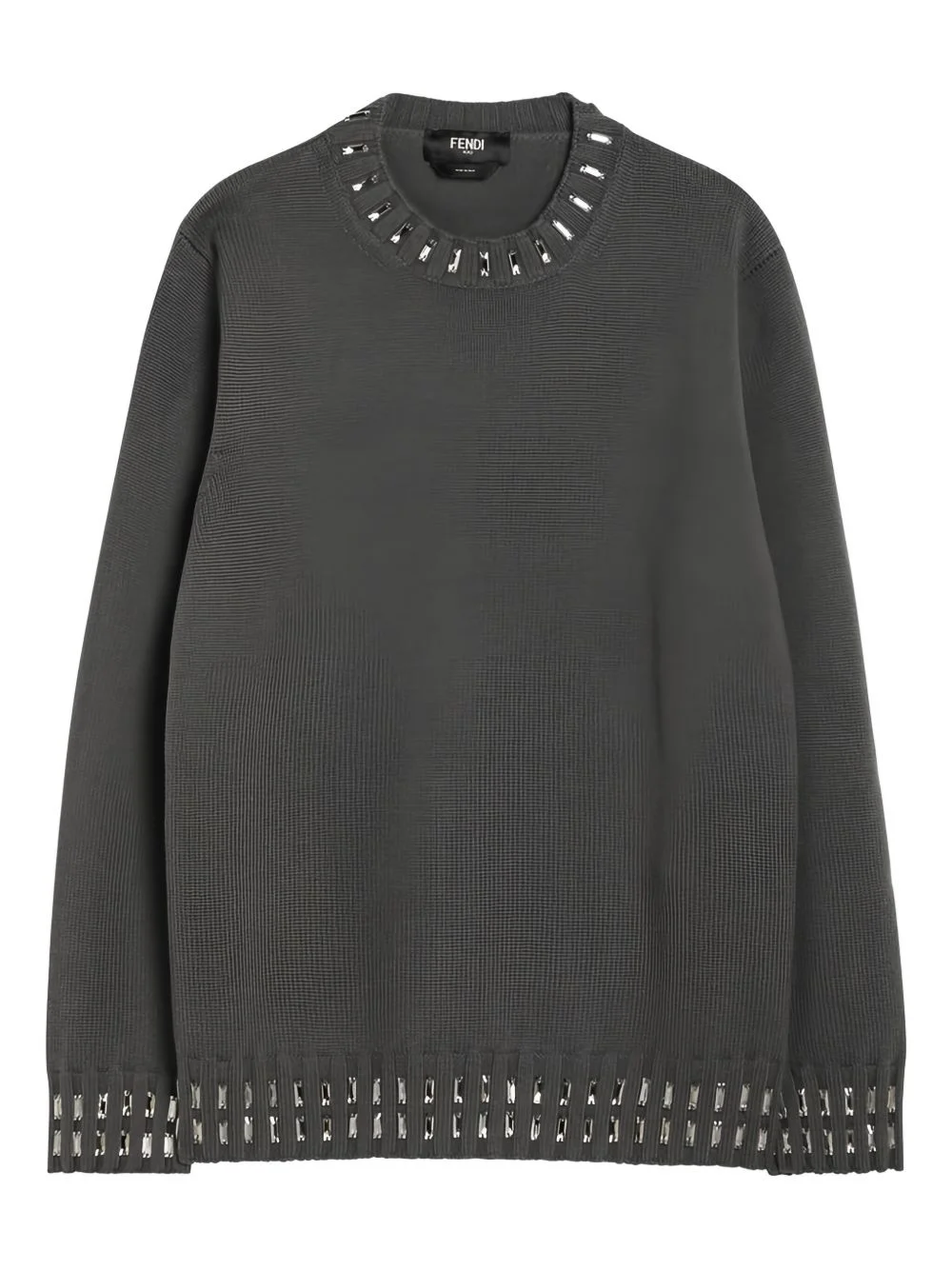 wool blend sweater Highlights - Grey - Wool blend - Crew neck - Crystal embellishment - Long sleeves - Ribbed cuffs and hem Made in Italy Composition Wool 70%, Cashmere 30% Washing instructions Read Manufacturer Guidelines
