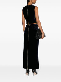 zip-embellished velvet maxi skirt