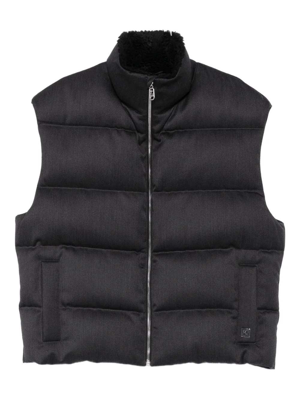 zip-fastening padded waistcoat Highlights - Lava - Padded design - Zip fastening - Shearling collar - Logo patch - Welt pockets Made in Italy Composition Outer: Virgin Wool 100% Lining: Viscose 100%, Goose Down 90%, Goose Feather 10% SIZE & FIT Model measurements Height 6 ft 2 in(1.87 m) Bust/Chest 37.79 in(96 cm) Hips 37.79 in(96 cm) Waist 30.31 in(77 cm) Washing instructions Dry Clean Only
