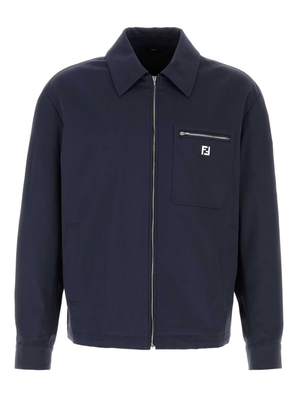 zip-up shirt jacket Highlights - Dark blue - Front zip fastening - Chest patch pocket - Signature ff logo detail - Long sleeves Made in Italy Composition Lining: Cupro 100% Outer: Cotton 97%, Elastane 3% Washing instructions Read Manufacturer Guidelines