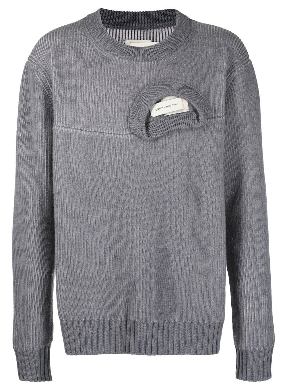 deconstructed ribbed jumper Feng Chen Wang is known for its innovative and contemporary design style. This is illustrated by this ribbed knit construction for AW22. The brand reconceptualises the classic silhouette of a jumper through a deconstructed design, evoking the brand's modern style. Highlights - Grey - Wool - Ribbed knit - Deconstructed design - Round neck - Long sleeves Imported Composition Wool 100% SIZE & FIT Model measurements Height 6 ft 2 in(1.87 m) Bust/Chest 36.41 in(92.5 cm) Hips 37 in(94 cm) Waist 29.52 in(75 cm) Measurement SLEEVE LENGTH 27.16 in(69 cm) LENGTH 27.95 in(71 cm) Shoulder Width 19.68 in(50 cm) Washing instructions Dry Clean Only
