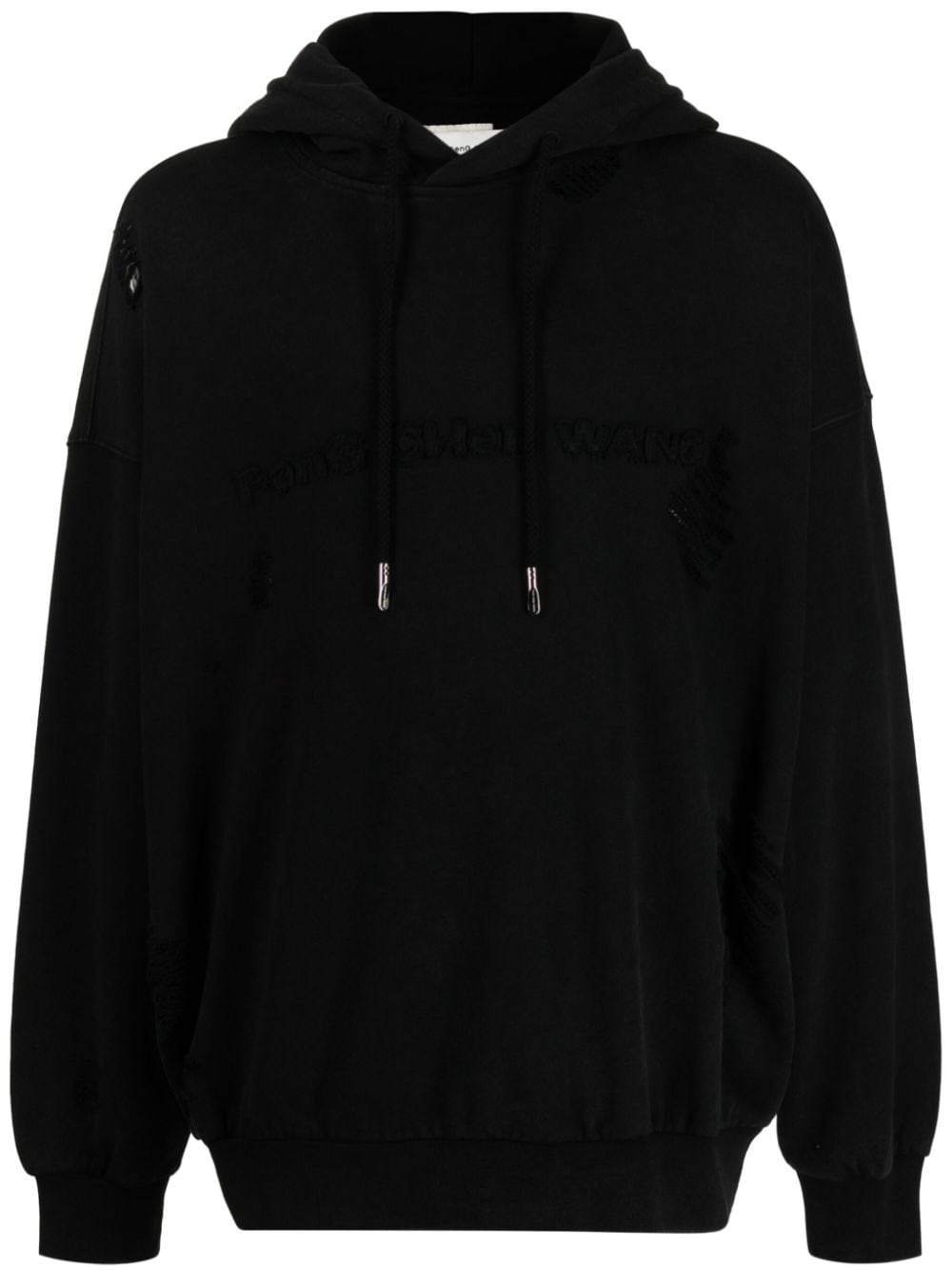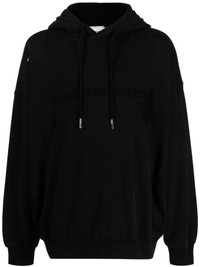 logo-applique cotton hoodie Highlights - Black - Cotton - Drawstring hood - Distressed effect - Applique logo - Long sleeves - Straight hem Imported Composition Cotton 100% SIZE & FIT Model measurements Height 6 ft 2 in(1.87 m) Bust/Chest 33.07 in(84 cm) Hips 35.43 in(90 cm) Waist 26.77 in(68 cm) Measurement CHEST 58.26 in(148 cm) SLEEVE LENGTH 22.04 in(56 cm) LENGTH 27.55 in(70 cm) Shoulder Width 27.55 in(70 cm) FittingInformation Designed for an oversized fit, offering additional room throughout Constructed with additional length on the sleeve Made from a midweight non-stretch fabric, this piece offers minimal elasticity when worn This piece fits true to size – take your usual size
