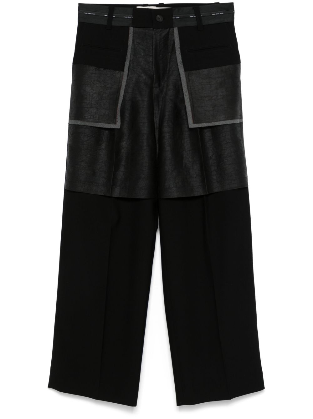 patchwork trousers Highlights - Black - Concealed fly and button fastening - Belt loops - Two front welt pockets - Two side inset pockets Imported Composition Outer: Wool 75%, Polyester 25% Lining: Polyester 100% SIZE & FIT Model measurements Height 6 ft 0 in(1.84 m) Bust/Chest 35.82 in(91 cm) Hips 37 in(94 cm) Waist 28.34 in(72 cm) FittingInformation Designed for a straight-leg, allowing for an unrestricted and comfortable fit over the leg Made from a midweight non-stretch fabric, this piece offers minimal elasticity when worn Washing instructions Dry Clean Only