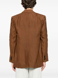 stripe-detail blazer Highlights - Caramel brown - Front button fastening - Two front flap pockets - Buttoned cuffs - Shoulder pads Imported Composition Fabric 100% SIZE & FIT Model measurements Height 6 ft 2 in(1.87 m) Bust/Chest 38.97 in(99 cm) Hips 37.99 in(96.5 cm) Waist 29.52 in(75 cm) FittingInformation Designed for a regular fit, allowing for a comfortably loose fit throughout the body Made from a lightweight non-stretch fabric
