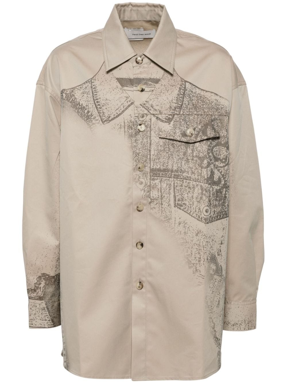 Trompe Loeil shirt Highlights - Khaki - Cotton blend - All-over graphic print - Front button fastening - Spread collar - Shirt sleeves - Chest flap pocket - Side slits - Curved hem - Relaxed fit Imported Composition Cotton 70%, Polyester 30% SIZE & FIT Model measurements Height 6 ft 2 in(1.87 m) Bust/Chest 33.07 in(84 cm) Hips 35.43 in(90 cm) Waist 26.77 in(68 cm) FittingInformation Designed for a relaxed fit, this piece allows for comfort and movement when worn Made from a midweight non-stretch fabric