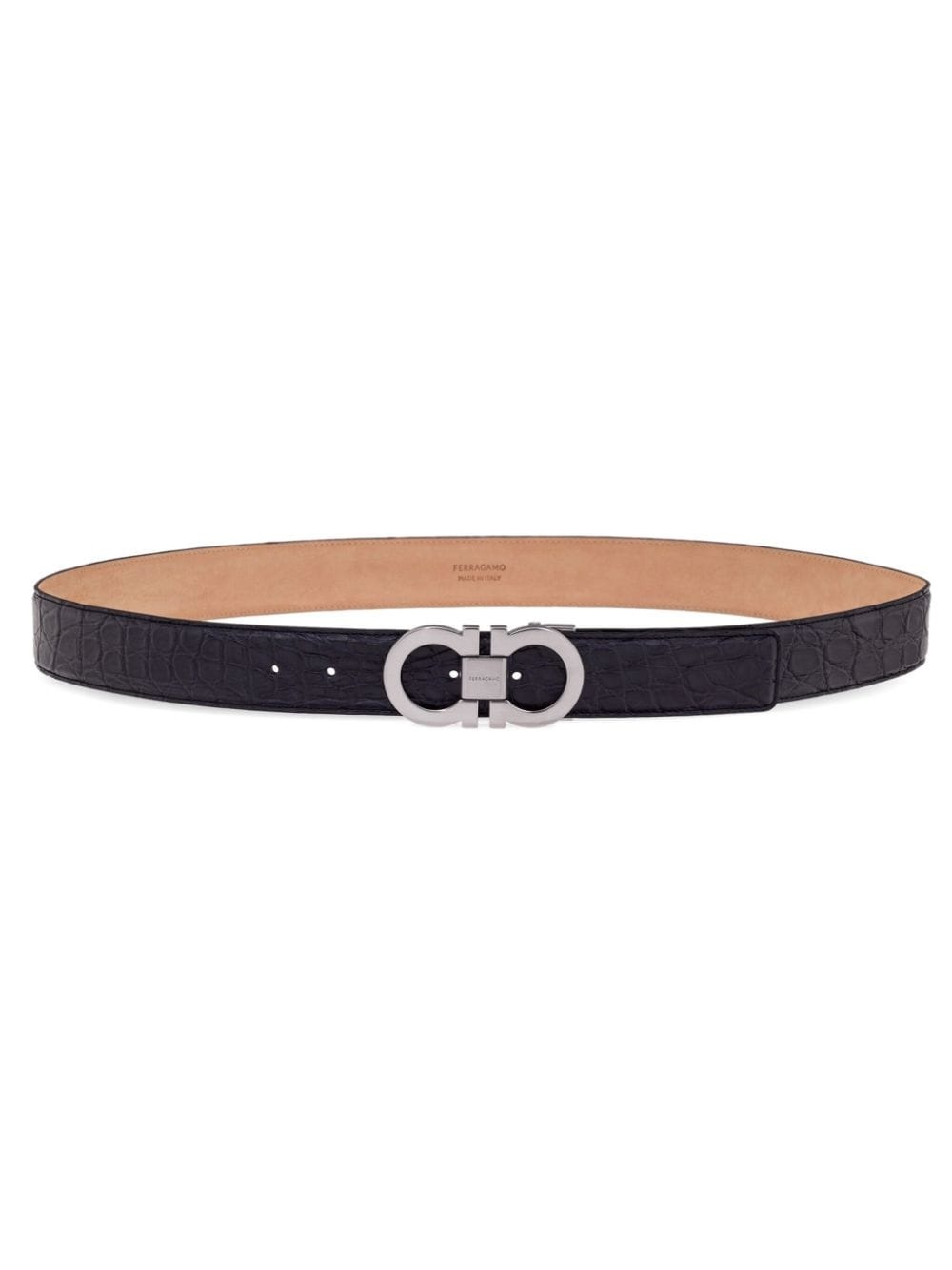 adjustable Gancini-buckle belt Highlights - Black - Embossed finish - Gancini buckle - Silver-tone buckle fastening - Punched holes - Flat tip - Adjustable fit - Unfortunately, we are unable to ship this item outside of the us. Made in Italy Composition Outer: Alligator 100%