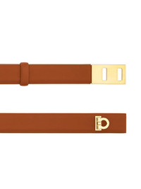 adjustable Hug leather belt Highlights - Cognac brown - Calf leather - Smooth grain - Gold-tone hardware - Debossed internal logo - Adjustable fit Made in Italy Composition Outer: Calf Leather 100% SIZE & FIT Measurement WIDTH 0.98 in(2.5 cm)
