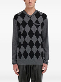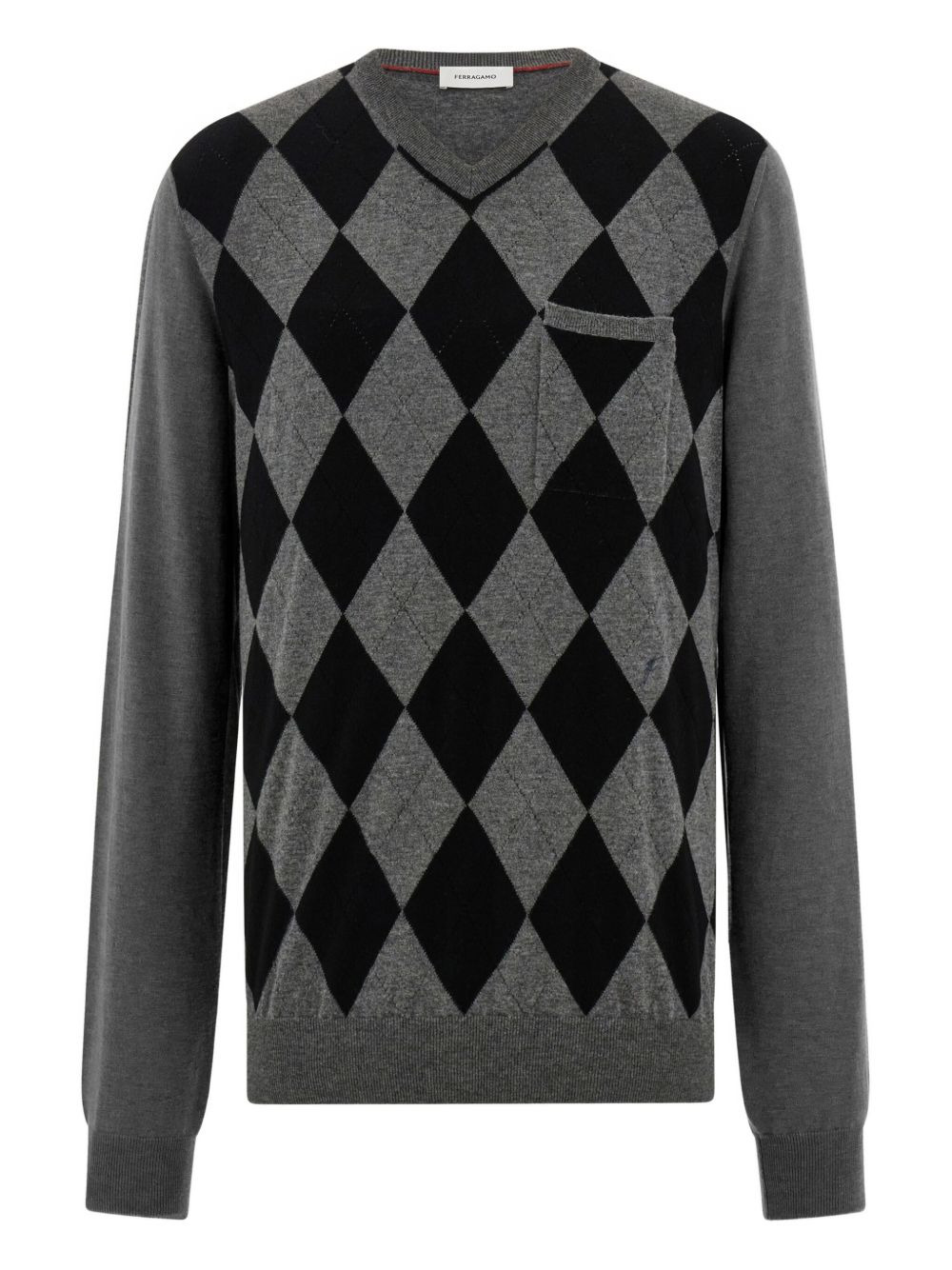 argyle pocket V-neck sweater Highlights - Grey - Argyle pattern - V-neck - Ribbed trims - Chest patch pocket - Virgin wool Made in Italy Composition Virgin Wool 100% Washing instructions Read Manufacturer Guidelines