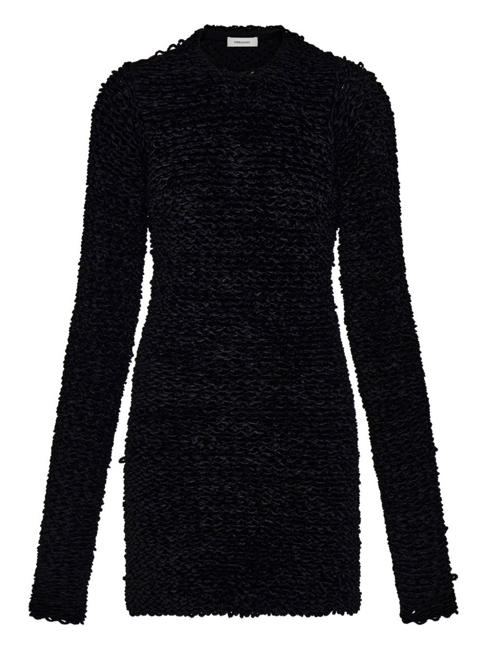 astrakhan-effect long-sleeve mini dress Highlights - Black - Astrakhan effect - Long sleeves - Round neck - Textured fabric Made in Italy Composition Outer: Viscose 80%, Wool 20% Washing instructions Read Manufacturer Guidelines