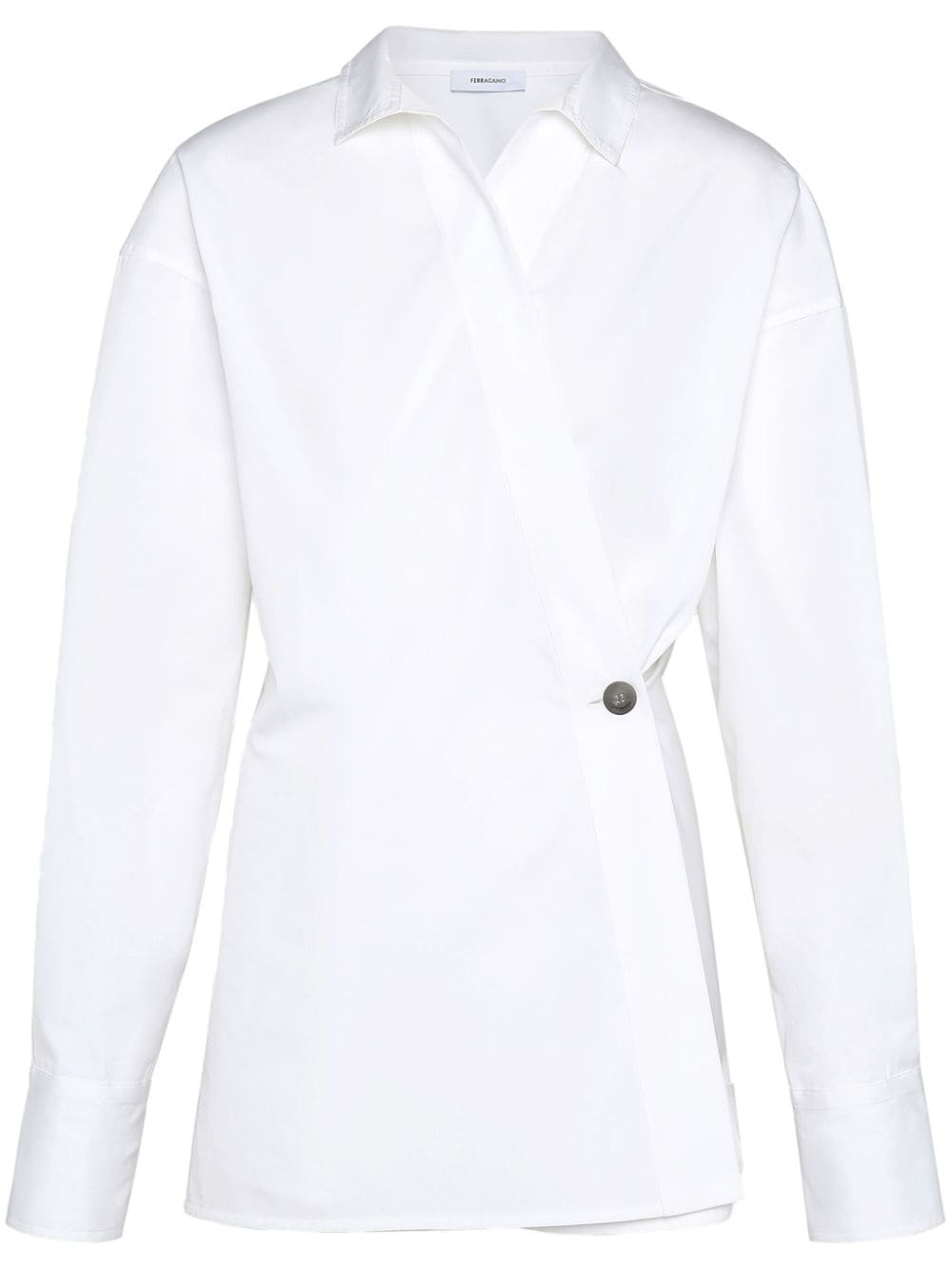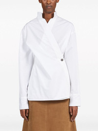 Asymmetric cotton shirt Highlights - Optical white - Cotton - Asymmetric design - Stand-up collar - Side button fastening - Long sleeves - Buttoned cuffs - Straight hem Made in Italy Composition Outer: Cotton 100%